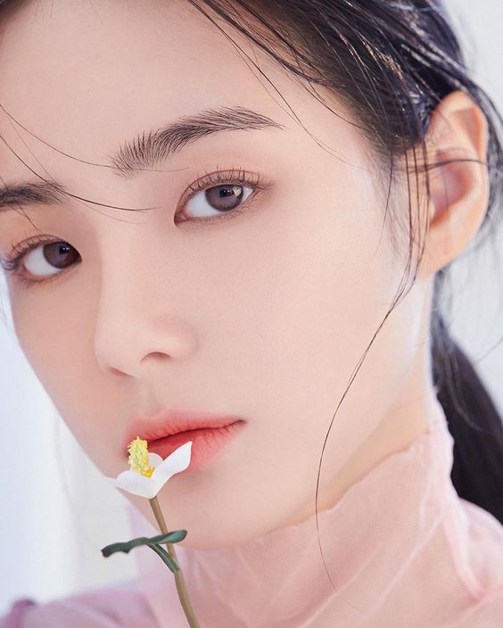眉毛方面,參考韓國今年大熱的妝容,不再需要強調眉型輪廓,取而代之是柔和的絨霧線條,讓眉毛由深到淺自然漸層,以眉刷順著眉毛方向刷出毛流感,再用眉粉將眉毛間空白區域填上,不用特別把顏色填好填滿,稍微補色即可,第一筆先從眉中開始用眉刷刷勻色,順勢暈染到眉尾,最後再用餘粉畫眉頭,這樣就能畫出柔霧感的眉毛啦!