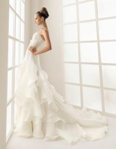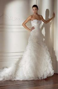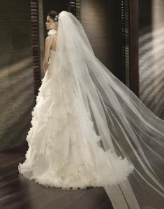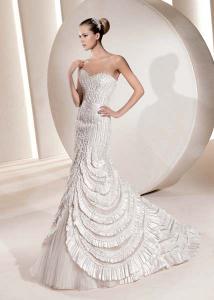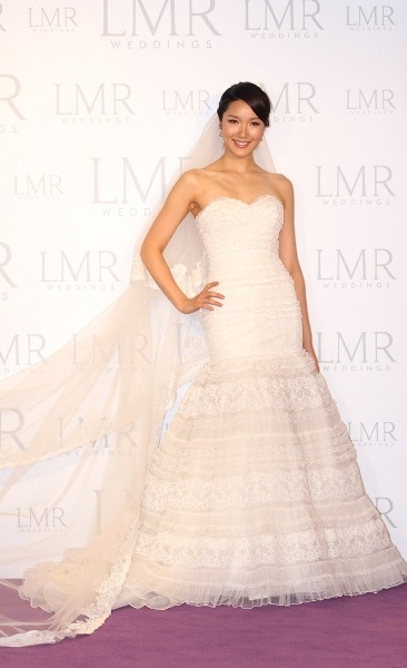 李亞男在婚紗秀壓軸時身穿的Pronovias婚紗,多種層次Ruffle雪紡蕾絲,加上修長魚尾的剪裁,突出其窈窕身段,她更表示早前到了歐洲,見到那兒的教堂,覺得在那兒在親友見證下成婚也很好;而夢想中的婚紗,必定要修身、長拖尾以及頭紗。