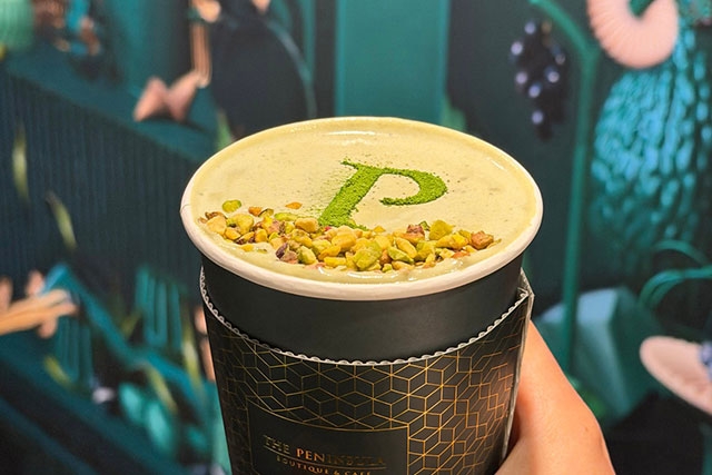 除了甜蜜朱古力,開心果愛好者又怎能錯過?為迎接2月26日「開心果日」,半島精品店與咖啡廳特別推出多款手工開心果糕點,以及香濃順滑的開心果拿鐵與朱古力飲品。開心果拿鐵以馥郁堅果香融合絲滑鮮奶,覆上手工芝士奶蓋並灑上開心果碎,鹹甜交織、層次豐富,冷熱皆宜,每杯港幣HK$98(外帶HK$68),為味蕾帶來一試難忘的奢雅享受。