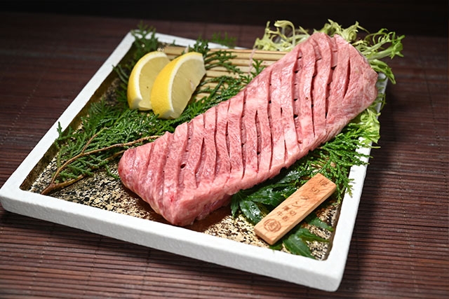 日本總店名物「黑毛和牛里肌肉」是不少客人會點選的大件燒肉,在烤肉的過程能好好鎖緊肉汁,加倍美味,完美的油脂分佈,入口即溶!