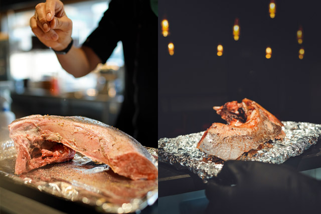日本直送的原塊吞拿魚鮫以高溫爐燒4小時,不單止皮脆肉嫩、油脂豐腴,而且入口即溶但又不會太油膩,配以芫荽香蒜醋味噌及泰國甘柚沙律就最適合不過!