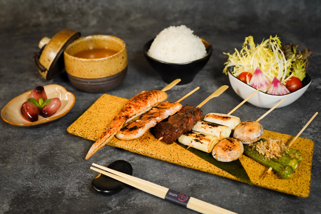 重點推介「廚師精選八式串燒套餐」,套餐包括前菜、時令煮物、八款廚師發辦串燒、雞湯烏冬及甜品(HK$680),以農場的新鮮時令食材製成,經由廚師發辦,更可因應客人口味訂製。
