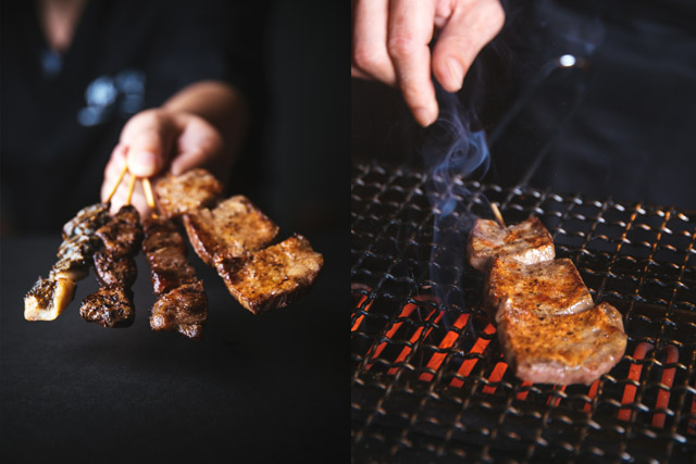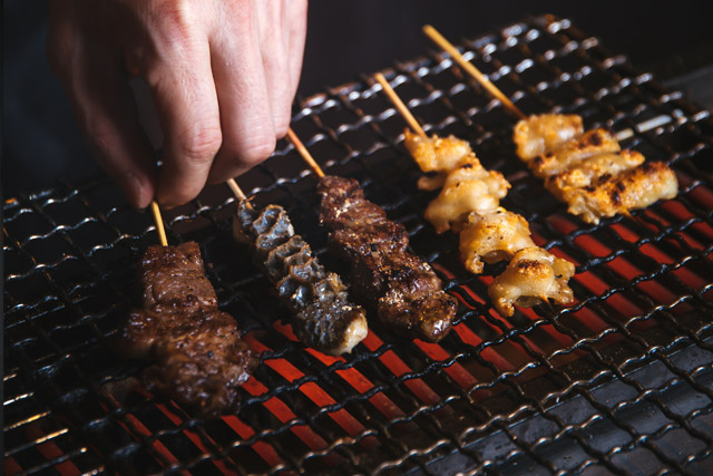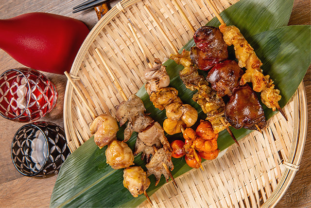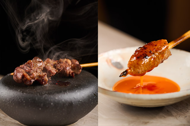在放養環境下成長的鹿兒島黑薩摩雞,以暗紅色的外型聞名,油脂分佈均勻,肉質細膩,更含有天然的肌苷酸,不論是以煮丶燒或刺身方式享用,串燒選用擁有百年燒製歷史、日本白橡木及硬本燒製而成的備長炭為原料,為串燒添上誘人的炭火香,必定能為串燒迷帶來驚喜滋味!