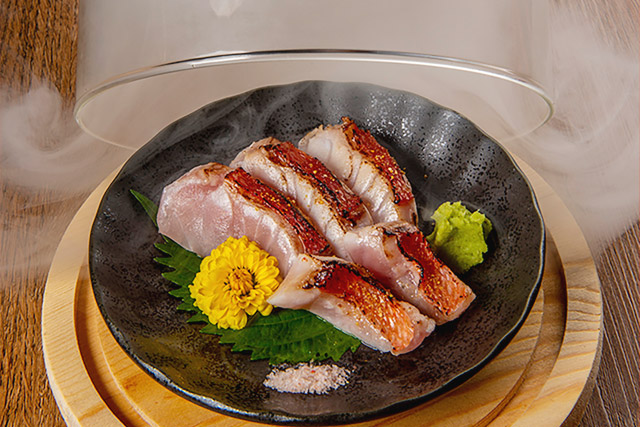 魚肉呈淡淡的櫻花粉紅色,以蘋果木來煙燻過的魚肉鮮甜嫩滑,上桌時用玻璃蓋住,一打開整間餐廳頓時瀰漫著金目鯛的鮮味和濃烈的蘋果木味,是色香味俱全的打卡菜式!