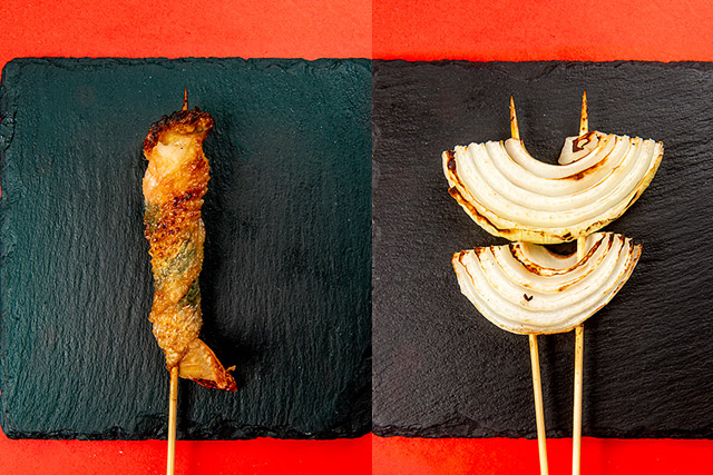 製作紫蘇雞皮蝦卷時,師傅首先會將蝦剝殼,並以紫蘇葉包著蝦,然後再包上雞皮,讓你一口品嚐到雞皮的香脆和油脂感、紫蘇葉的清香和新鮮彈牙的花竹蝦,另一款淡路島烤洋蔥清新鮮甜,有獨特的香氣甜味,並沒有一般洋蔥的嗆辣,吃起來香甜多汁,口感柔軟,平常不愛吃洋蔥的你也會一試愛上!