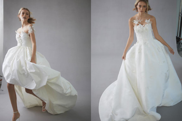 其實,要說到頂級或是名人御用婚紗,除了有vera wang外,亦不得不提頂級中的頂級婚紗品牌Oscar de la Renta。自從賈桂琳甘迺迪(Jacqueline Kennedy)開始,Oscar de la Renta都幾乎成為每一任美國第一夫人的御用婚紗品牌。Oscar de la Renta的婚紗以浪漫與精緻工藝見稱,層層疊疊的手工貼花、大裙襬、壓花、 刺繡都是品牌的標誌,十分高貴典雅,又帶有浪漫和少女的感覺!