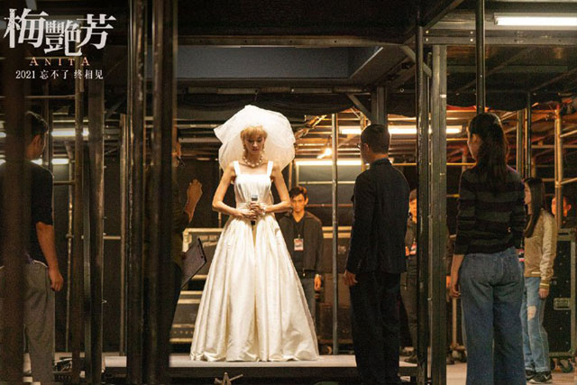 梅艷芳終於穿上屬於自己婚紗走上舞台,唱著代表她心聲的《夕陽之歌》:「曾遇你真心的臂彎,伴我走過患難,奔波中心灰意淡,路上紛擾波折再一彎,一天想到歸去但已晚」,然後拖著長長的婚紗裙擺,一步步走上舞台階梯,轉身揮手向台下的歌迷道別,這個畫面相信也是大家永遠留在心底,梅艷芳人生中最美的一刻。