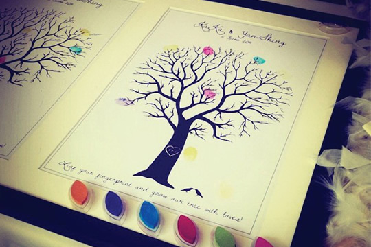 前陣子在友人婚宴的接待處第一次看見O’ccasion Workshop的指模樹,一見便愛上。一眾賓客在指模樹印上指模,然後再在指模旁簽上名字,的確比一般在簽名布上簽名更顯心思。