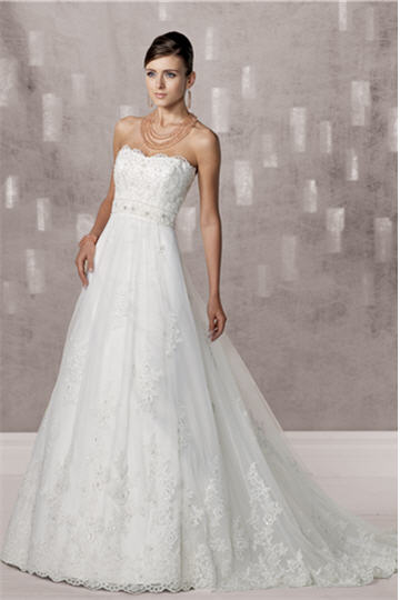 低腰設計適合東方新娘,蕾絲加上薄紗永遠是完美組合。