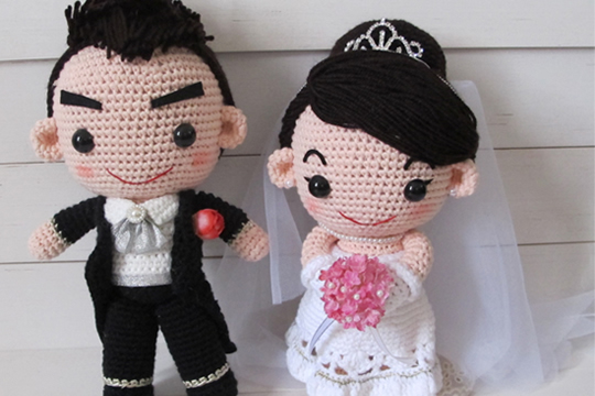 近年流行針織公仔,很多新人都會到針織小店度身訂造一對針織公仔來作花車車頭裝飾。不過,在香港訂造 一對針織公仔就最少約需500港元,價錢可不便宜呢!淘寶搜索一下,發現針織公仔價錢比一般香港針織小店平一倍!瀏覽一家名為「織夢園毛線玩偶旗艦店」的針織公仔店,賣家除了提供過百款現成的針織公仔之外,也設有「客戶來樣訂製區」,可以為你度身訂造獨一無二的針織公仔。此外,小店最特別之處是,其售賣的針織公仔都可以配上承托支架,讓你把針織公仔放在迎賓桌上作裝飾都可以,一物二用,為新人想得非常周到。
