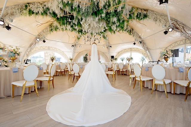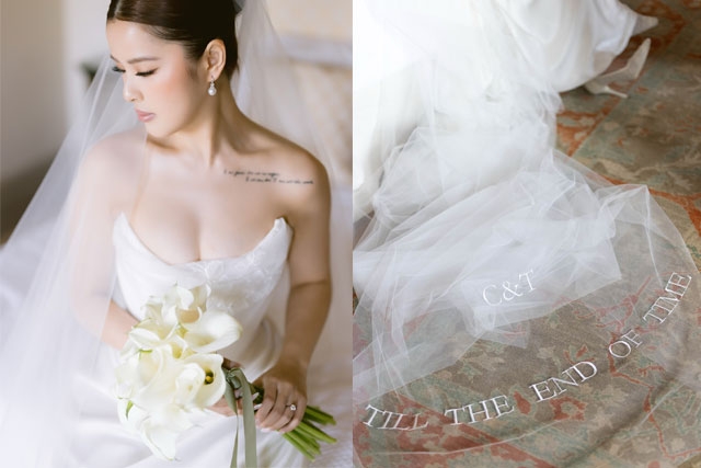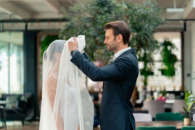 進場時,新娘可以將花球放在頭紗內側,自然地撐起頭紗,讓頭紗不會貼臉或壓住妝容,拍照時線條更柔美,畫面更立體。當進入宣讀誓詞的環節,新娘手持麥克風以及結婚誓詞時,亦建議將兩者都置於頭紗內,這樣不但能讓頭紗自然被撐起,避免壓住妝容,讓攝影師能捕捉到最動人的表情,同時亦避免頭紗摩擦麥克風而產生雜音,也能更清晰看到結婚誓詞上的一字一句,不會因頭紗遮擋而影響誓詞的流暢度。婚禮當日的每一個畫面,都是一生一次的美感記錄,只要細節做到位,就能讓每個珍貴的畫面都更浪漫動人。