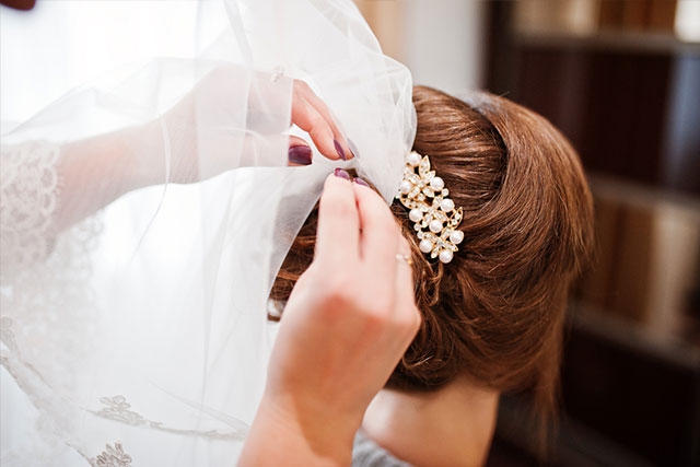 ■ 頭紗卡住髮飾或髮夾,導致造型移位