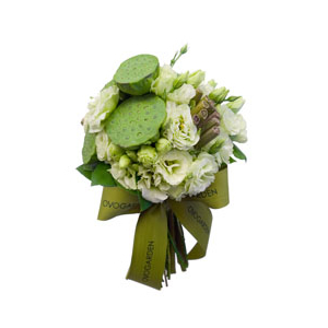 OVO Garden一直為新娘子提供獨一無二的花球,花球的形態各異,而且在用料上亦非常有創意,如左圖般的花球,就用上新鮮的蓮蓬、白色的桔梗作為主角,「蓮」本身就有出污泥而不染的脫俗氣質,加上「蓮子」寓意「年生貴子」,既漂亮亦好意頭,是難得的花球款式。