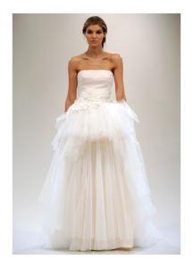 其中一套Ball Gown款式的婚紗,我自己就非常喜歡,因為它的layer只有裙身的三分一,而不是傳統的長長layer,短的紗輕輕彈開,而裡面是A-Line的裙子,具有修飾身體線條的功效。在這Collection中,大部份的婚紗都以純白色為主,只有一件是以米黃色作為主調,米黃色的婚紗多半是vintage的款式,但這件婚紗卻體現了時尚感;另外,加上黑色小蝴蝶結在胸口的那套婚紗,亦具特色。想突破傳統的新娘子不妨參考。