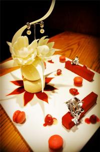 - 情人節當日享星級度假村食府Fontaine的pERLE甜品 (上面掛上一對Depazzi Signature 系列白金耳環。18ct白金耳環上,鑲有兩顆完美無瑕的11.5毫米圓形南洋白珍珠及兩顆GVSI欖尖形鑽石)