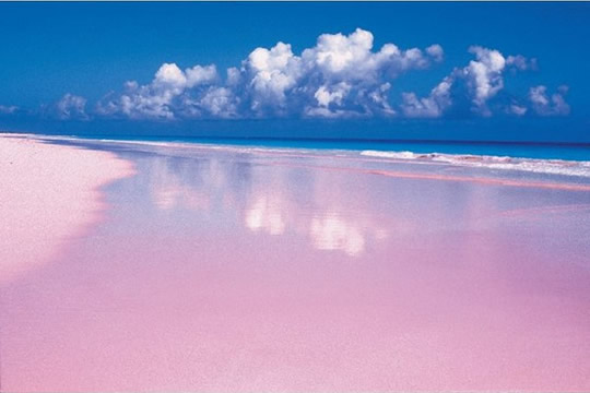 拿一把沙子放進手裡看,你會發現其實沙灘的沙不是全部都是粉紅色,有些是白色的。而如梅子粉般的粉紅色沙其實是由海底中的紅色珊瑚刷成的,它們隨潮水沖上岸邊,再跟沙灘上的白沙混和在一起,久而久之便令整個沙灘都變成了一抹浪漫的粉紅。