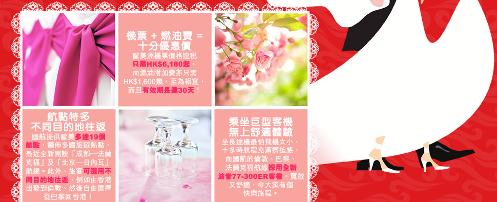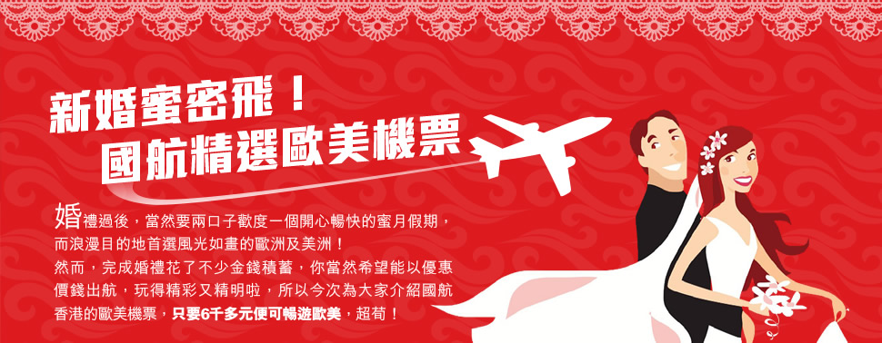 新婚蜜密飛! 國航精選歐美機票
