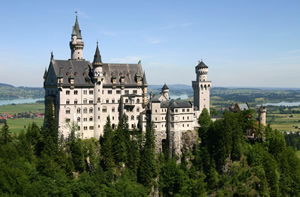福森近郊的新天鵝堡是迪士尼樂園中灰姑娘城堡的靈感來源,令大量遊客不遠千里、慕名而來。建造者路易二世長得身材高大、英俊瀟灑,尤其喜愛音樂及戲劇等藝術,且醉心於華格納歌劇中的騎士城堡,於是在1869-1886年間興建了富麗堂皇的新天鵝堡,實現了心目中美麗典雅的中世紀意象。五層高的城堡內,處處金碧輝煌,房間和大廳結合了多種建築風格,包括哥德式、羅馬式、拜占庭式,甚至有仿造的鐘乳石洞,充分顯示出路易二世的想像力。
