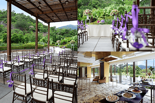 戶外婚禮最令人頭痛的地方,就是怕天氣不似預期。放心,酒店已為在園林草地舉行婚禮的新人準備好Plan B,萬一下雨的話,儀式可以移師到凱悅廳戶外有蓋露台舉行。
