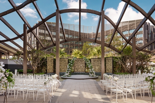 佔地120平方米的戶外園林宴會場地,同樣可以用作室戶外證婚,可容納80個座位或150名賓客舉行cocktail party。在這裡設photo booth和賓客拍照留念也非常合適。在酒店舉行證婚派對,更可以優惠價購買海洋公園pre-wedding套餐或加入其他海洋公園體驗元素,讓你的婚禮更具海洋氣息。