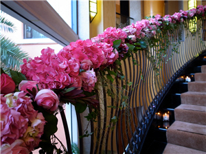 | 用了深粉紅色的肯雅玫瑰及繡球作為場地佈置的主花。花球方面同樣會以粉紅為主,主要用了牡丹。整個場地的佈置充滿vintage及秋冬的感覺。為營造聖誕氣氛,花的顏色會偏深一點。 Tips﹕準新人可於婚前3個月查詢agnes b.場地佈置的服務,以教堂的佈置為例,需$6,000起;而婚宴場地方面,則以$10,000起。價錢會視乎花種及數量而有所調整。 |