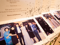 | 生活易特別送贈了真人比例紙牌予Karen,放在婚禮的入口處「迎賓」,讓來賓感受Karen & Johannes新婚的喜悅。 |