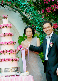糖皮蛋糕有6層高,共35磅重。可供300位來賓食用。Karen的結婚蛋糕主要以粉紅色玫瑰花作為裝飾,上面畫有lace圖案。 Tips﹕準新人可於婚禮前2個月至半年訂購結婚蛋糕,可選擇度身訂造或現購。味道方面有朱古力、檸檬、雲尼拿味,配以合時生果等。價錢約$300一磅,要視乎蛋糕的大小而定。 |