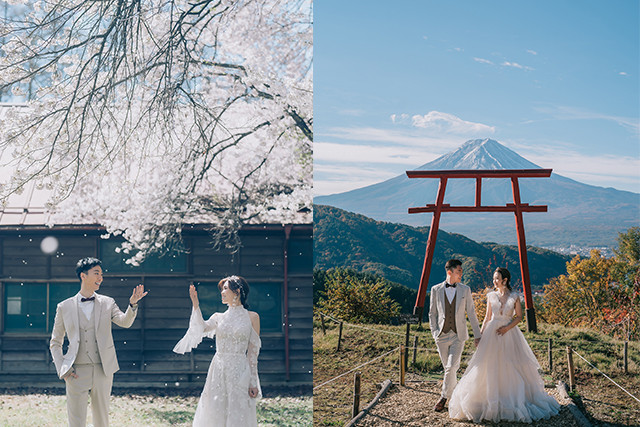 喜歡夢幻山系風?到了4月初至中,是全日本賞櫻的最佳時間,準新人不妨穿上和式禮服,於東京河川沿岸漫步,亦可以選擇在富士山附近進行婚攝,一邊欣賞迷人的富士山,並以柔美浪漫的粉紅色櫻花作點綴,在這絕景下輯錄最夢幻唯美的畫面。