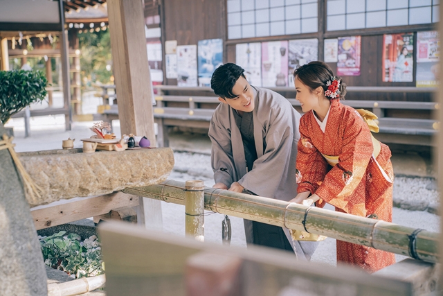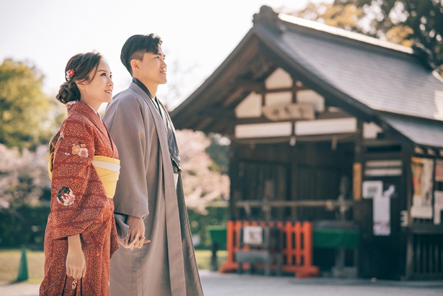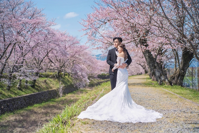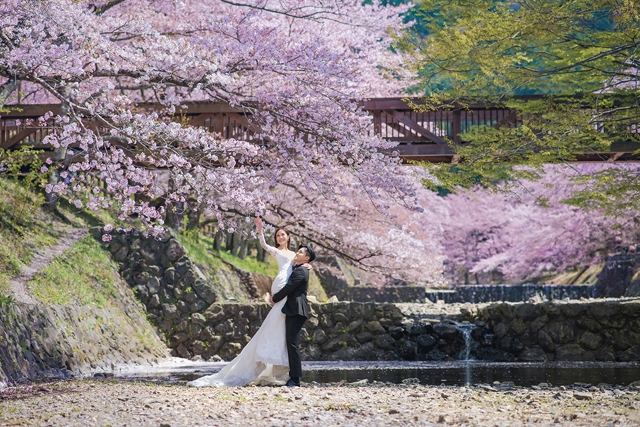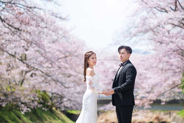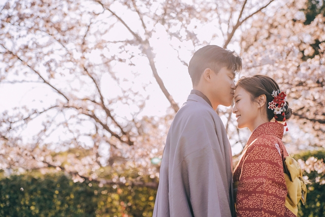 二人亦有穿上傳統日本和服於櫻花樹下拍攝婚照,場面Sweet爆!