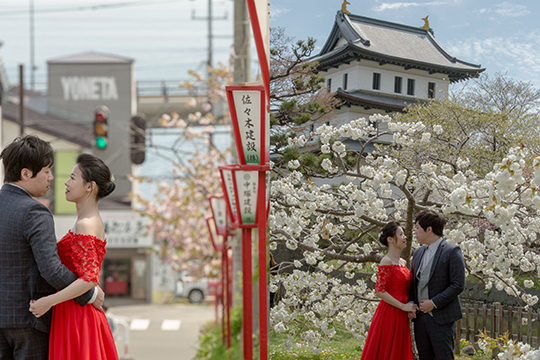 與本州青森咫尺相望,北海道唯一的日本古城堡,城由內而外種滿櫻花樹,每到櫻花時節,松前城被粉紅花海所包圍,滿滿的日式風格,穿上日本和服婚紗,在日本城池下,留下一期一會的美麗倩影。