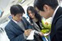 只2小時多的航程,就到達了一個不一樣的日本海岸之地─沖繩。如此跟日本各地不一樣的特色就由機場開始,不同於以往經常路過的大城市機場的繁忙,沖繩那霸機場予人鄉郊悠閒的感覺,走不到3分鐘就已經從閘口走到海關檢查的櫃檯,而櫃檯後面就立即是行李輸送帶了。小巧而方便的機場,俏俏預示著沖繩這地的鄉土特質,也仿佛同樣預示著這地仍然保持了城市缺乏的熱情。剛踏出海關禁區,正式步進機場接機範圍,就看到了Watabe的Daigo先生連同沖繩旅遊協會的人員攜同鮮花前來迎接一對新人John及Hazel,同行的還包括了沖繩的報章記者。John及Hazel接受了簡短的訪問後,立即乘搭OTS特約接駁車前往OTS租車店領取預約好的汽車,車廂的媒體螢幕播放著有關在沖繩駕車的各種事項,不知不覺間突然有點迷惑,怎麼影片的各個要點都聽得懂,卻才發現,原來短片附設普通話的語音廣播,完全沒有以往在日本乘交通工具的疏離感,這樣的情況也還是第一次在日本遇上。