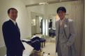 樓高兩層的Watabe店,在夕陽下透出微黃的燈光,顯得十分溫暖。登上二樓,John及Hazel獲安排於一張小桌上坐下來,為翌日的婚紗拍照揀選髮型及化妝類別,然後他們二人就分別前往作拍攝前的最後一次婚紗禮服試穿。除了兩人從香港帶來的Watabe婚紗禮服外,Daigo先生更為准新娘帶來驚喜,向她送上特別由香港帶來的桃紅色禮服,這是Watabe香港店特別為Hazel準備的驚喜。另一個驚喜是,替John試穿的店員林先生竟會說流利普通話,而且他更會在翌日隨行拍攝,替一對新人打點一切,甚至作為翻譯。