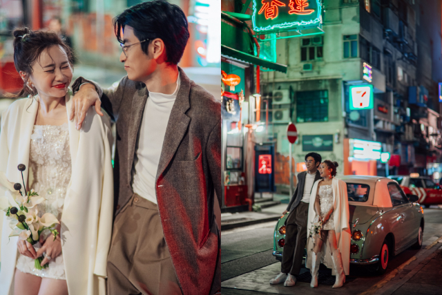 另外他們還特地去霓虹招牌下,拍攝了非常有香港特色的婚紗照,當中更飽含了很浪漫的意義,那就是攝影師告訴他們,大概到他們老一點拿出來的時候,這種招牌已經在香港看不到了,既有霓虹燈獨特的美感,又能成為深刻的甜蜜回憶。