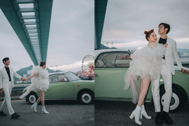 另外他們還特地去霓虹招牌下,拍攝了非常有香港特色的婚紗照,當中更飽含了很浪漫的意義,那就是攝影師告訴他們,大概到他們老一點拿出來的時候,這種招牌已經在香港看不到了,既有霓虹燈獨特的美感,又能成為深刻的甜蜜回憶。