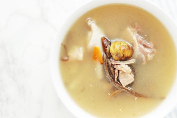 做法:將猴頭菇洗淨,用清水浸3-4 小時;肉眼汆水;合掌瓜洗淨切件;淮山、椰棗洗淨;栗子烚8-10分鐘去皮;滾水下材料,大滾10分鐘,轉小火煲兩小時,加鹽調味即可!