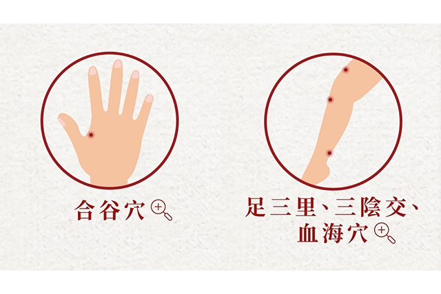 而生理期不規律問題,醫師指亦可按摩以下每個穴位約5分鐘:「合谷穴」、「太衝穴」、「三陰交穴」、「內關穴」,同樣可紓緩不適症狀。
