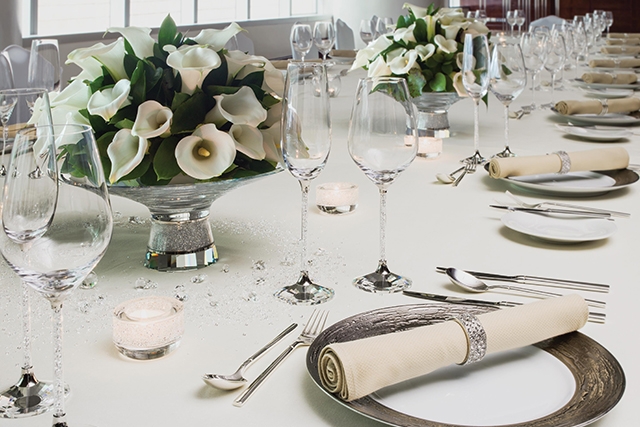 此外主餐桌更配以精緻璀璨的施華洛世奇水晶元素裝飾,彰顯新人的高雅品味,讓新人四大長老更覺體面!