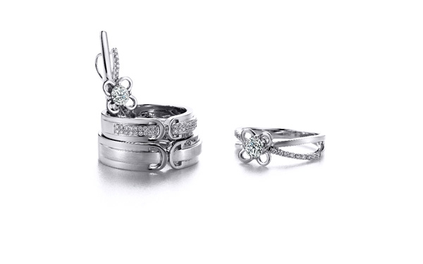 以18K堵及鑽石精製而成,呈流線型的設計,象徵著二人兩手相牽,緊緊的連繫著。