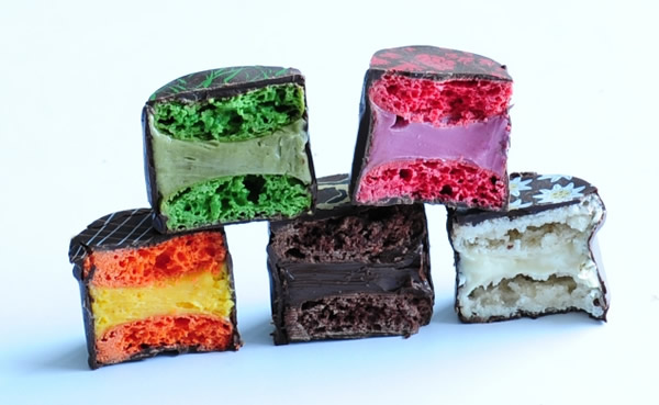 本地著名蛋糕設計師Eva Liu,同樣是法式甜點的愛好者,發揮創意把crème brulee、Millefeuille 和 macaron混合,將香滑、鬆軟的口感集於名為chocoron身上,外層繽紛多彩,包著內裡甜甜的macaron,加上香濃的朱古力味,配合軟滑夾心,一定令一眾嘉賓一試難忘,記得您們新婚的甜蜜,心裡時時回味那份幸福感覺。