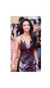 日前湯唯身穿Roberto Cavalli 深紫色珠片吊帶晚裝,出席於北京舉行的第14屆華表獎頒獎典禮,走到紅地毯上旋即成為焦點。這套晚裝是由意大利專程運到,整條裙子雖然以珠片釘製,卻沒有一般的俗味,反而讓湯唯多添一份高貴、優雅的感覺。深紫色的選擇,亦與她白皙的肌膚配合得剛好,加上一頭長髮,只在髮尾輕輕捲曲,其餘的部份都營造了輕盈、鬆鬆的效果,令整個造型都非常自然,又不會太casual。