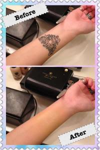 (圖三:使用Hollywood AIR專業化妝噴槍遮蓋紋身前後對比)