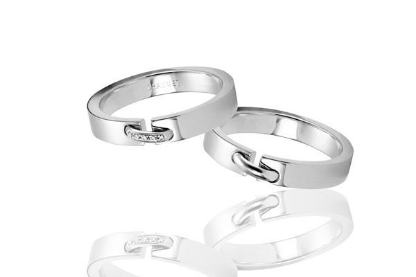 現今,婚戒款式層出不窮,繼刻名及打手指模後,還有加了QR code的,如此多花樣,其實目的都只有一個,就是希望訊息如達文西密碼一樣,只有懂的人才能把密碼解開,這樣才夠獨特、夠personalized!想擁有簡單一點的愛情密碼,一圈於設計上暗藏愛情密碼的指環,或可滿足你們想與眾不同的需求。"I pronounce you husband and wife”