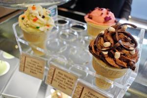 另一家由五星級大酒店師傅主理的餅店Pantry Bread & Pastries推出一款不會融化的「雪糕甜筒」(圖三及四),雖然外型跟真甜筒一模一樣,不過,其實雪糕部份是mousse,而內層則為海綿蛋糕。雪糕cupcake系列分別有朱古力、士多啤梨及雲呢嗱三款口味。試齊三種之後,我自己則比較鍾情綴以糖珠的雲呢嗱味,香甜的雲呢嗱配以香濃芝士mousse,感覺在吃著一個甜筒形狀的芝士蛋糕,完全是 “what you see not what you eat”, 很有分子料理feel呢!