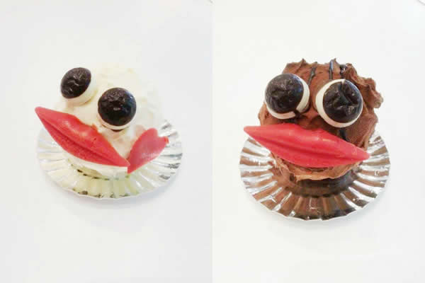 時下很多年輕一輩新人都崇尚簡約cocktail party,不過,許多時,cocktail party都會予人「無啖好食」的錯覺,好像來來去去都只有三文治和finger food之類,單調乏味,亳無新意。近日,到過幾個傳媒新品發佈活動,看見幾款趣怪小甜點,忽發奇想,以那些令人至少一望見便會笑逐顏開的甜點款待派對賓客也不錯,立時想在此跟大家分享!於尖沙咀The One開業不久的Harlan’s Cake Shop與高級餐廳Harlan's屬同一集團,食物味道及賣相當然有一定水準,就如這兩款外型逗趣的小魔怪甜點 (圖一),眼突口大的黑朱古力小魔怪,用上70% Valrhona品牌的黑朱古力製作,甜度適中,不過分甜膩,值得一讚。其內層為雙層海綿蛋糕及香蕉蓉,香甜軟滑,中和了外層黑朱古力的苦澀,卻不會抹煞掉黑朱古力的回甘,令人回味無窮;同樣擁有烈焰紅唇的白朱古力小魔女則以Valrhona白朱古力製成,內層為雙層海綿蛋糕、紅莓醬及新鮮紅莓,味道甜甜酸酸,令人非常開胃。