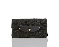 2. 黑色長方形的Woven Interlaced Patent Clutch,以「啪鈕」的部份作為clutch的cover,款色優雅大方,可配襯不同的晚裝。高6.3” X 闊11.8” X 深2.4”,約USD705。