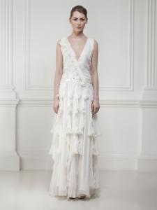 整體上風格是簡潔浪漫,精美的刺綉,華麗的珠飾,浪漫長婚紗簡潔高貴又不失動人細節;設計概念將MW簽名式設計抽出重點再作出改良,去給新娘一個摩登及時尚的婚禮。系列內每件設計均用名貴的物料如蠶絲,珠片,寶石再用人手去縫合及裝飾。這個系列只在全球幾處的名店作出限量發售,系列中的白色雪紡長裙,低調中散發出高貴氣質,另一焦點是一款手工縫紉羽毛裝飾的Cocktail dress,突破傳統之餘更突顯嬌俏可人的魅力,完全是大師級的作品。相對於一襲全新婚紗,價錢是偏高了一點,但出自大師手筆的作品,加上近年不少新娘子也希望在婚禮中加入時尚元素,可以說欣賞指數極高。