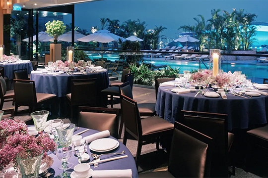 至於喜歡自然景致的新人,定會愛上酒店的「紫荊廳」和「戶外庭園」!「紫荊廳」採用大型玻璃窗設計,盡覽露天池畔景致,適合舉辦25席的精緻宴會、雞尾酒會或證婚派對。而寛廣舒適的「戶外庭園」則非常舉辦一場時尚婚宴,無論是白天綠意盎然的庭園氣息,還是夜晚的繁星閃爍的美景,同樣為婚禮增添浪漫色彩!