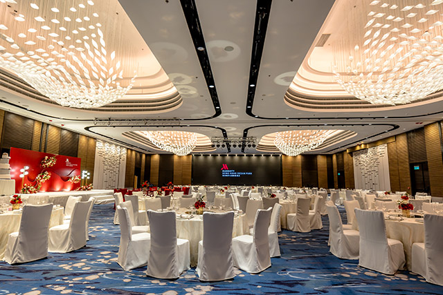 想像在壯觀的水族館前許下終身承諾,會是何等浪漫?酒店標誌性的16米高圓柱形水族館貫通三層樓,棲息約800條、種類高達約100種,可容納50位賓客,新人彷彿置身無邊海洋之中,極致浪漫。若偏好大排筵席,1,242平方米無柱式大宴會廳以海洋為主題,最多可筵開80席,配備大型LED屏幕與智能燈光設備,盡顯非凡氣派!酒店更有多間可靈活分隔的宴會廳,滿足不同規模婚宴需要。