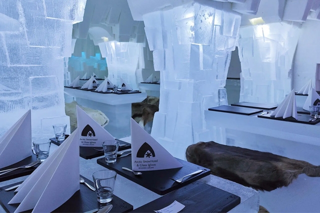冰教堂也有提供婚禮套餐,其中包括:婚禮安排、冰教堂和蠟燭裝飾、冰杯祝酒、北極雪酒店門票、婚禮協調服務、登記處的婚姻登記員主持婚禮、法律文件合作、結婚證書等,為準新人們安排好一切。酒店内更會有冰雪餐廳,就連桌子、椅子等都是用冰雕刻而成,實現你的冰之婚禮!