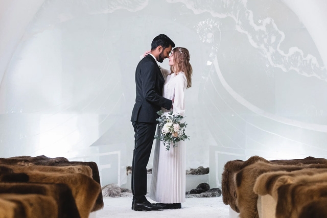 讓賓客在極光之下見證你們的愛情,不妨考慮位於芬蘭的冰教堂,全由人手雕刻而成,能容納至少40位客人。冰教堂内的溫度約為 0-5ºC,不但可以安排牧師進行儀式,甚至可以為準新人安排冰雪公主、聖誕老人等特別嘉賓來主持。